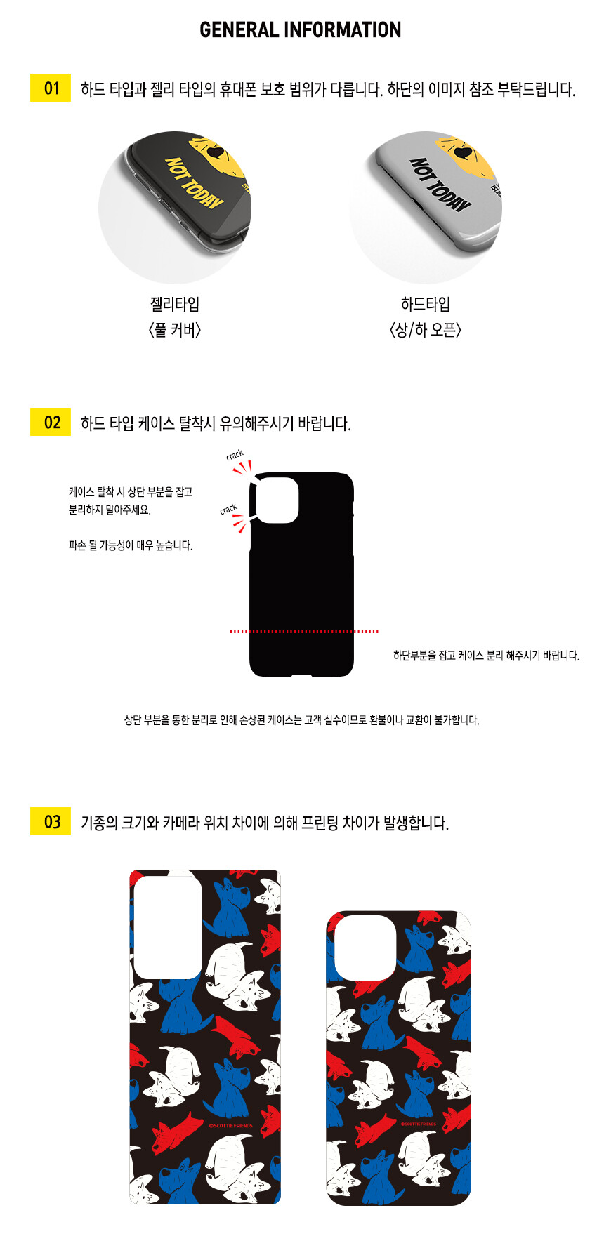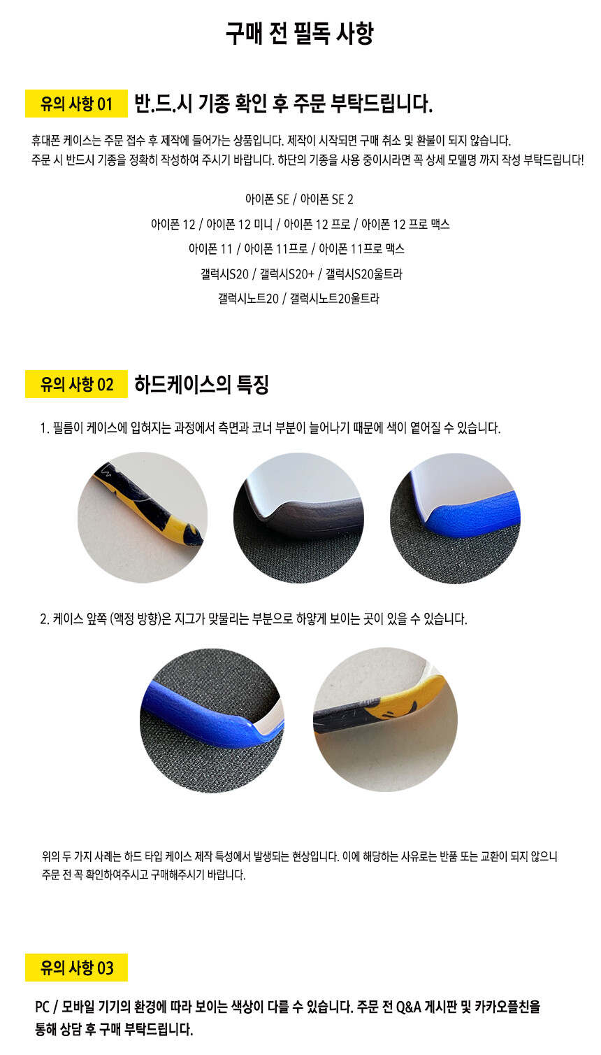 1. 주문 제작 상품인 폰케이스의 경우 교환 및 환불이 불가합니다.