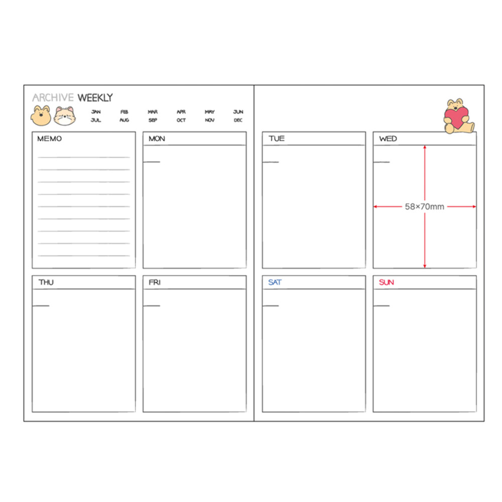 넓은 칸으로 구성되어 있어 다꾸를 하기 좋아요!
