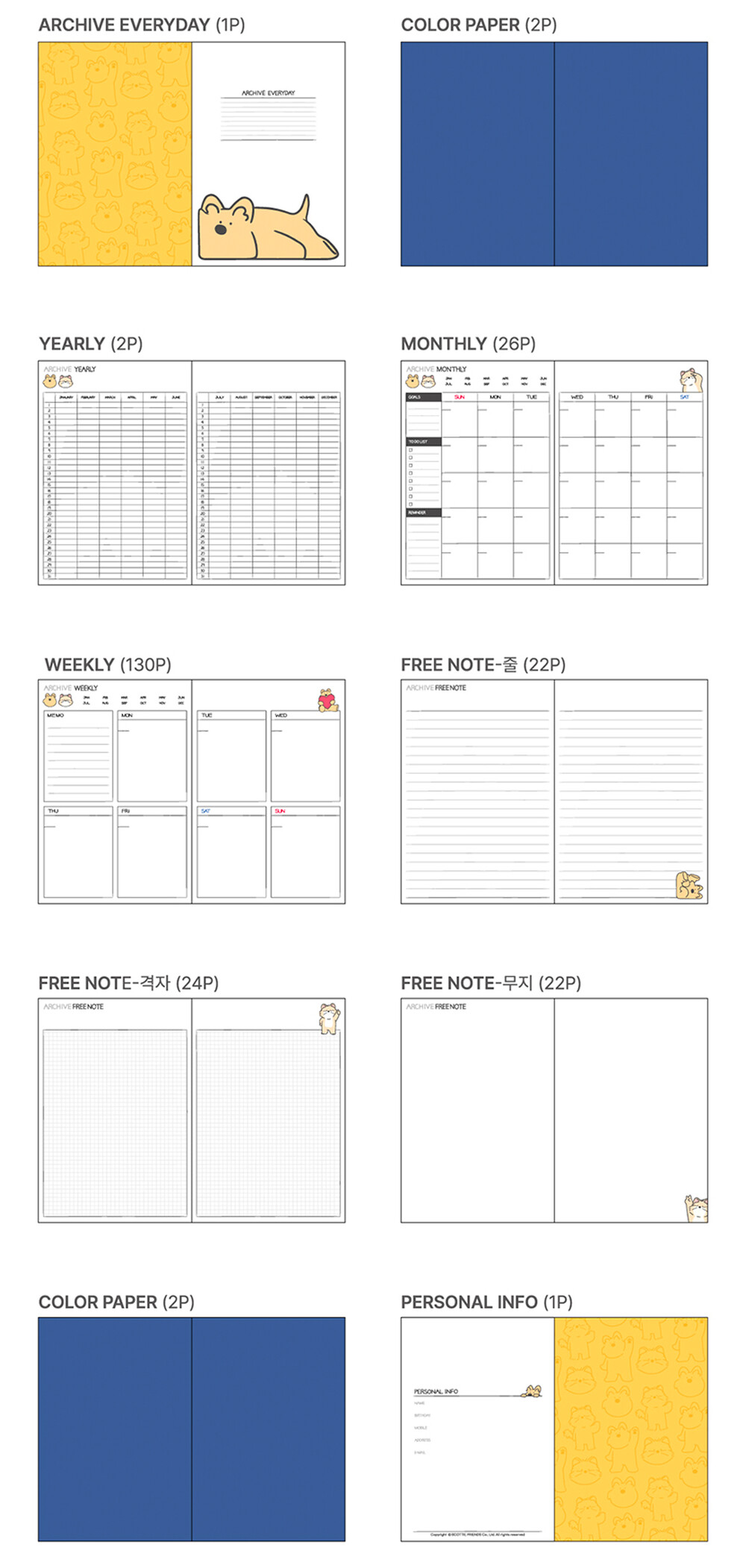 줄(22p), 격자(24p), 무지(22p)의 넉넉한 구성으로 다양한 용도로 사용할 수 있어요!
