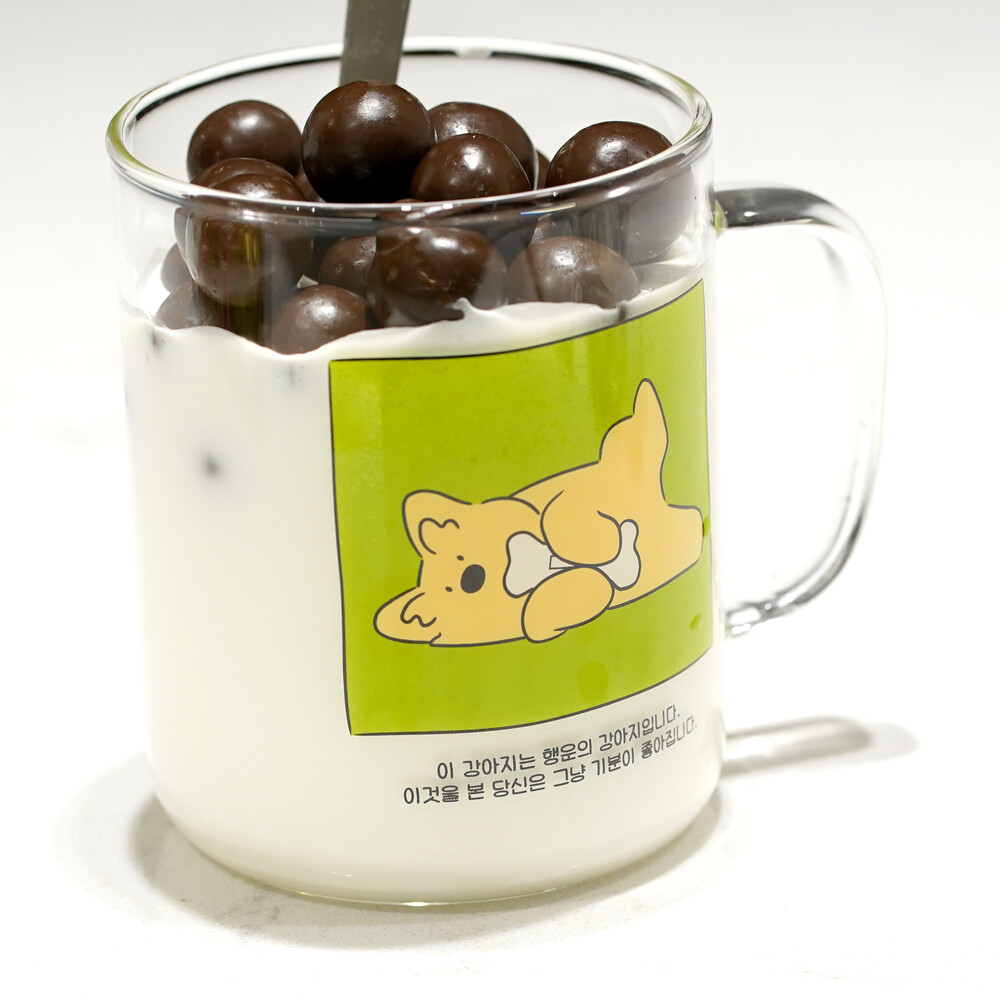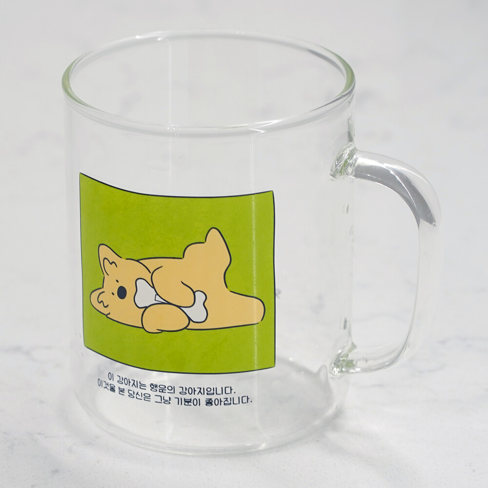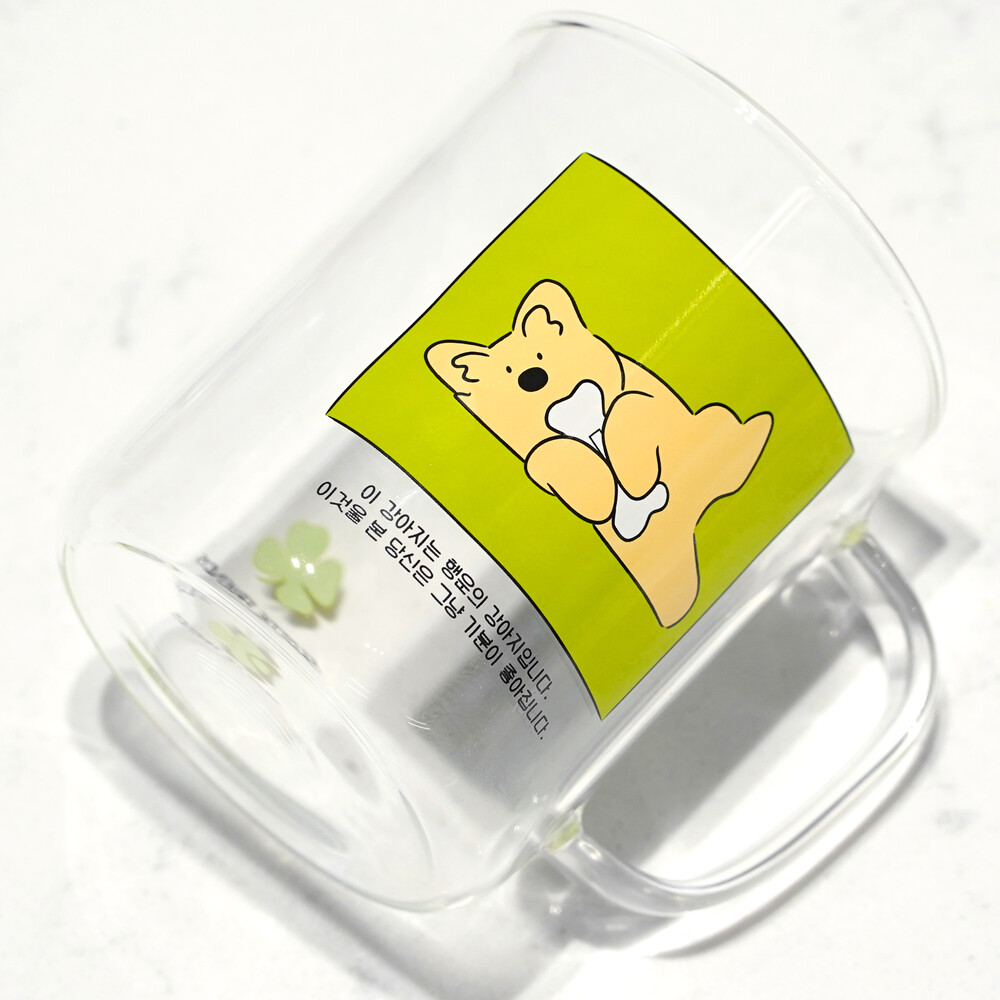 보고만 있어도 기분이 좋아지는 행운의 강아지 글라스 머그컵!