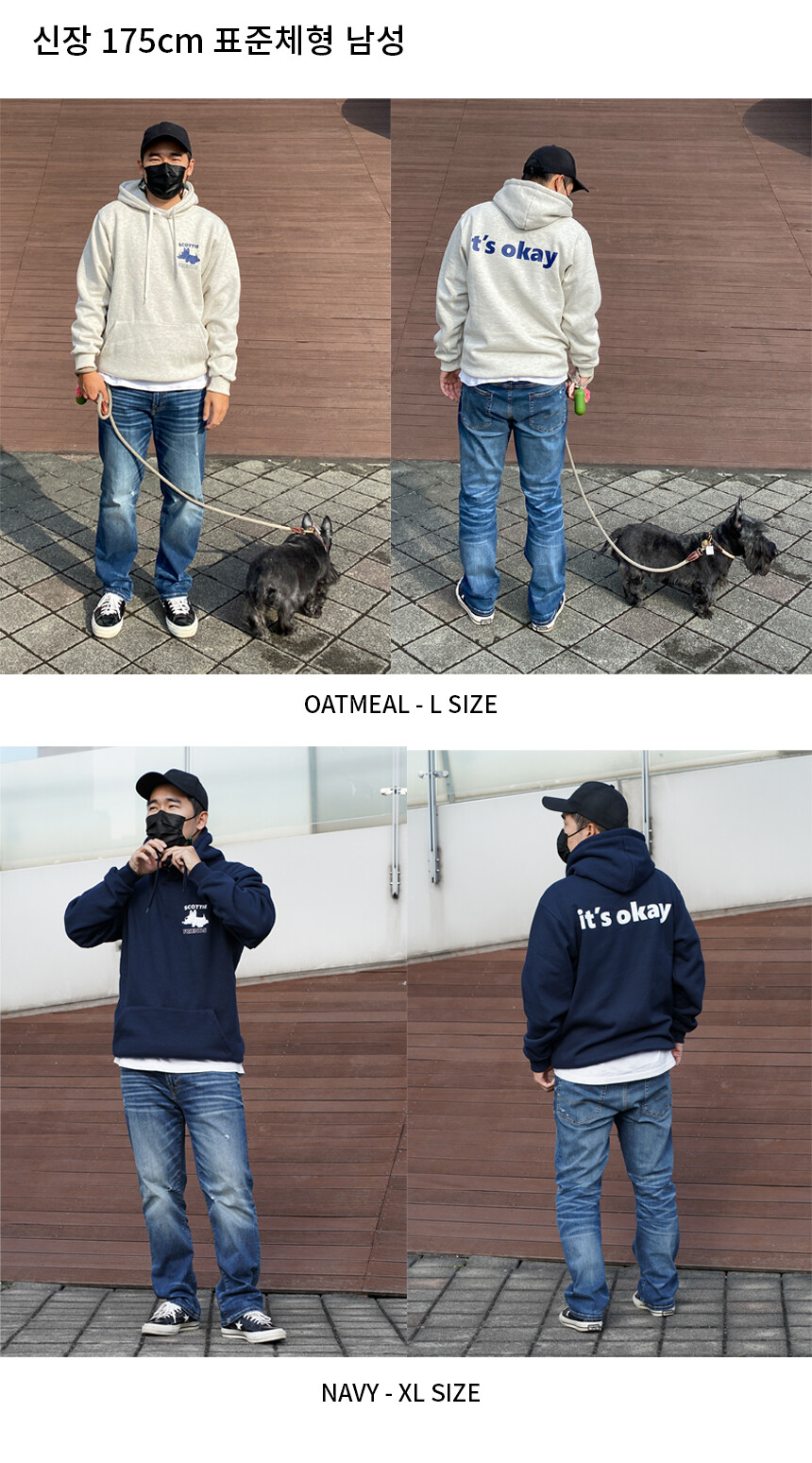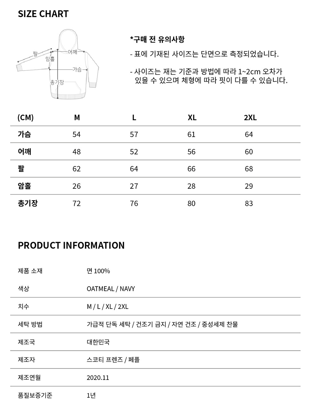 950g의 100% 면 소재, 덤블가공된 두툼한 기모원단으로 제작되었습니다.
