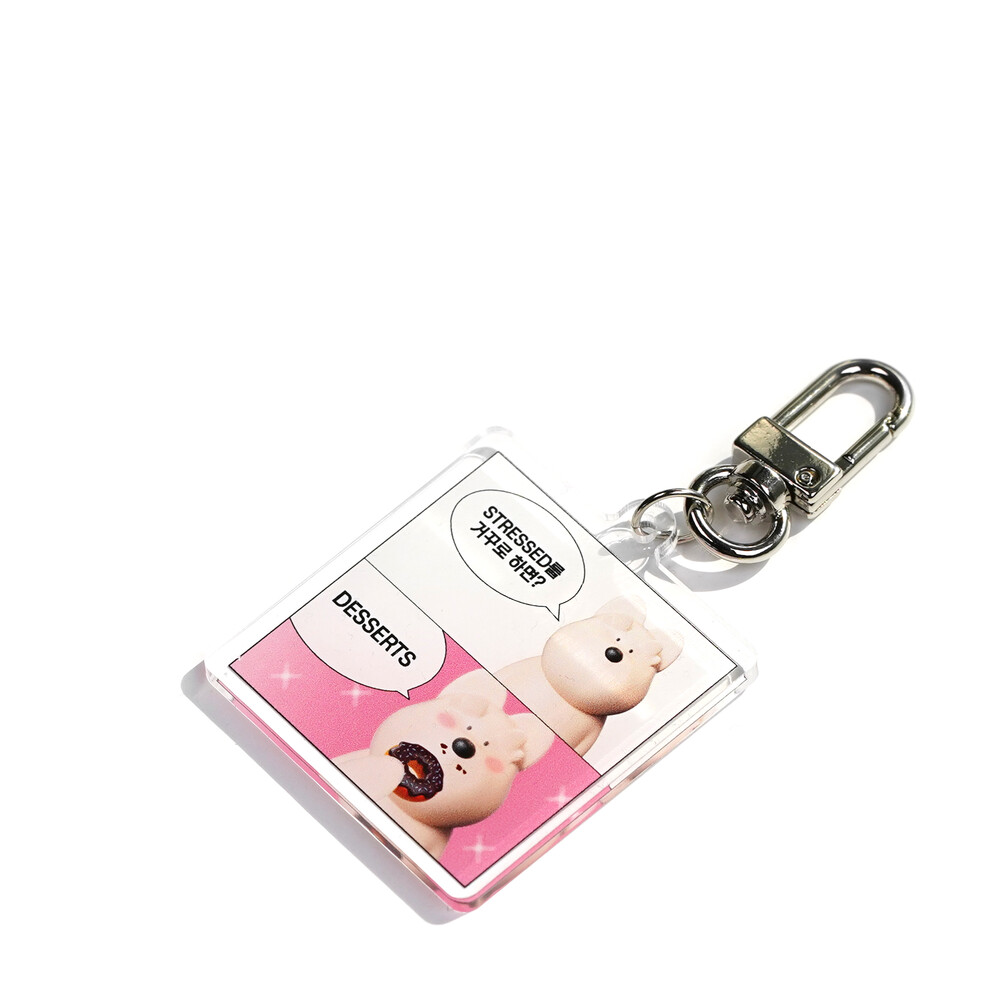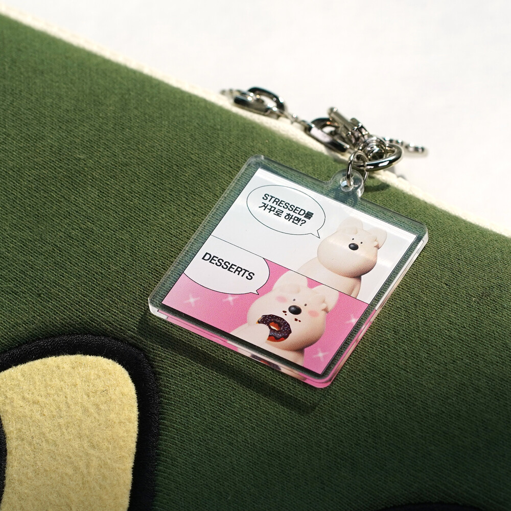 아크릴 키링 제작 방식 상 한 면은 인쇄가 노출되고 다른 한 면은 아크릴로 덮힌 방식입니다. 이는 아크릴 키링의 제작 특성으로 불량이 아니므로 교환/환불이 불가합니다.