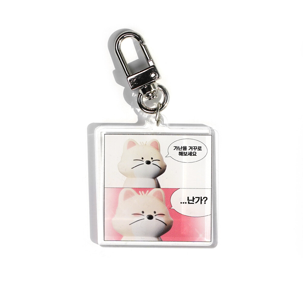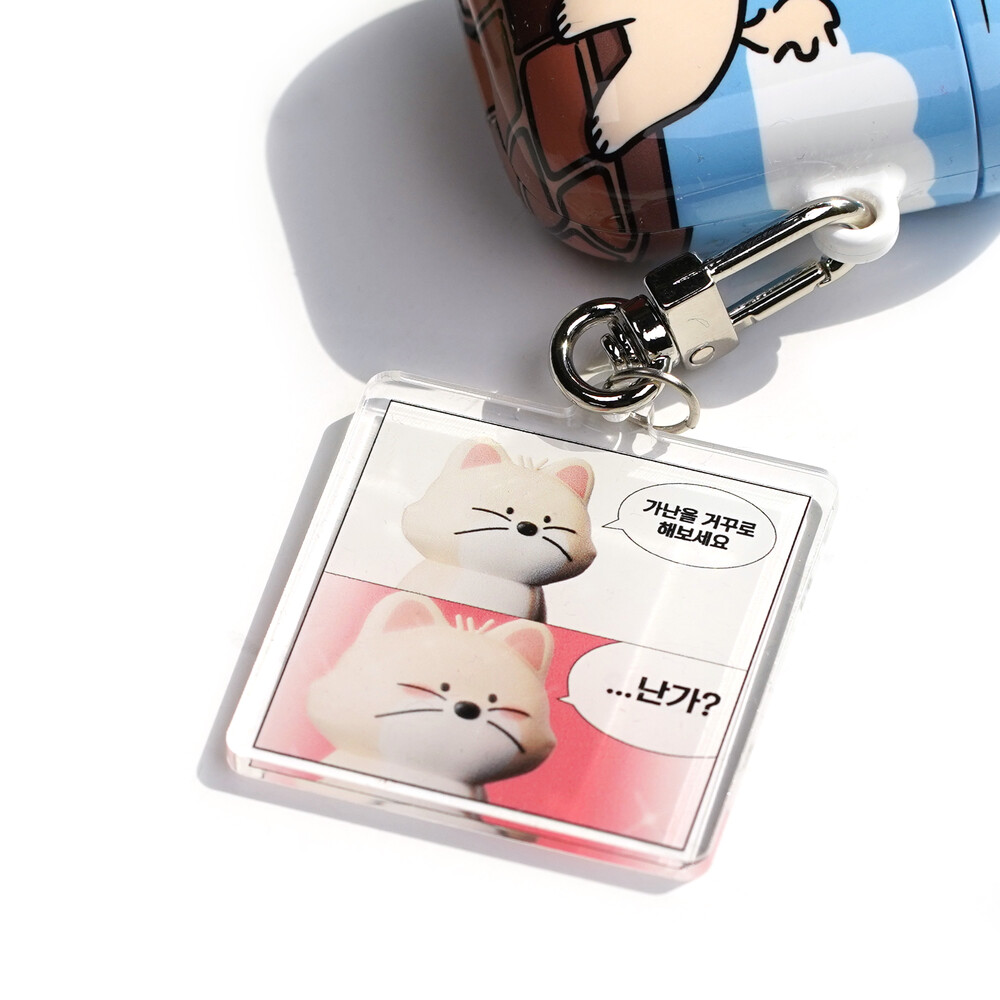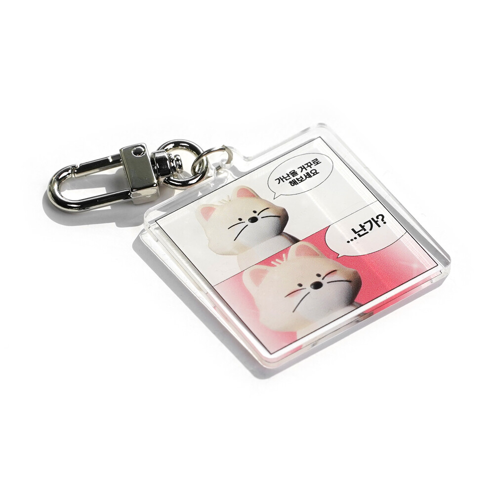 아크릴 키링 제작 방식 상 한 면은 인쇄가 노출되고 다른 한 면은 아크릴로 덮힌 방식입니다. 이는 아크릴 키링의 제작 특성으로 불량이 아니므로 교환/환불이 불가합니다.