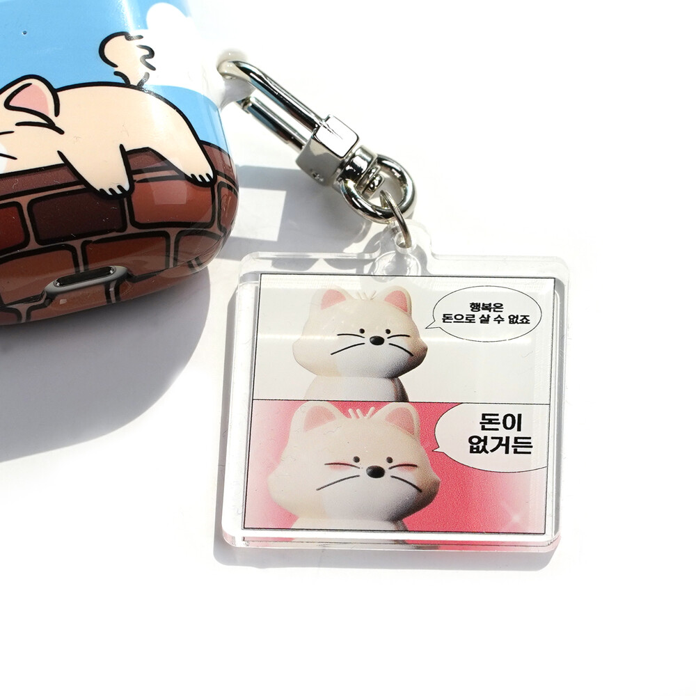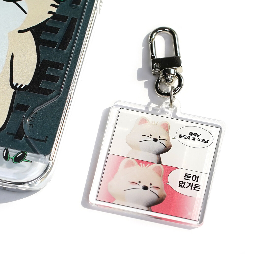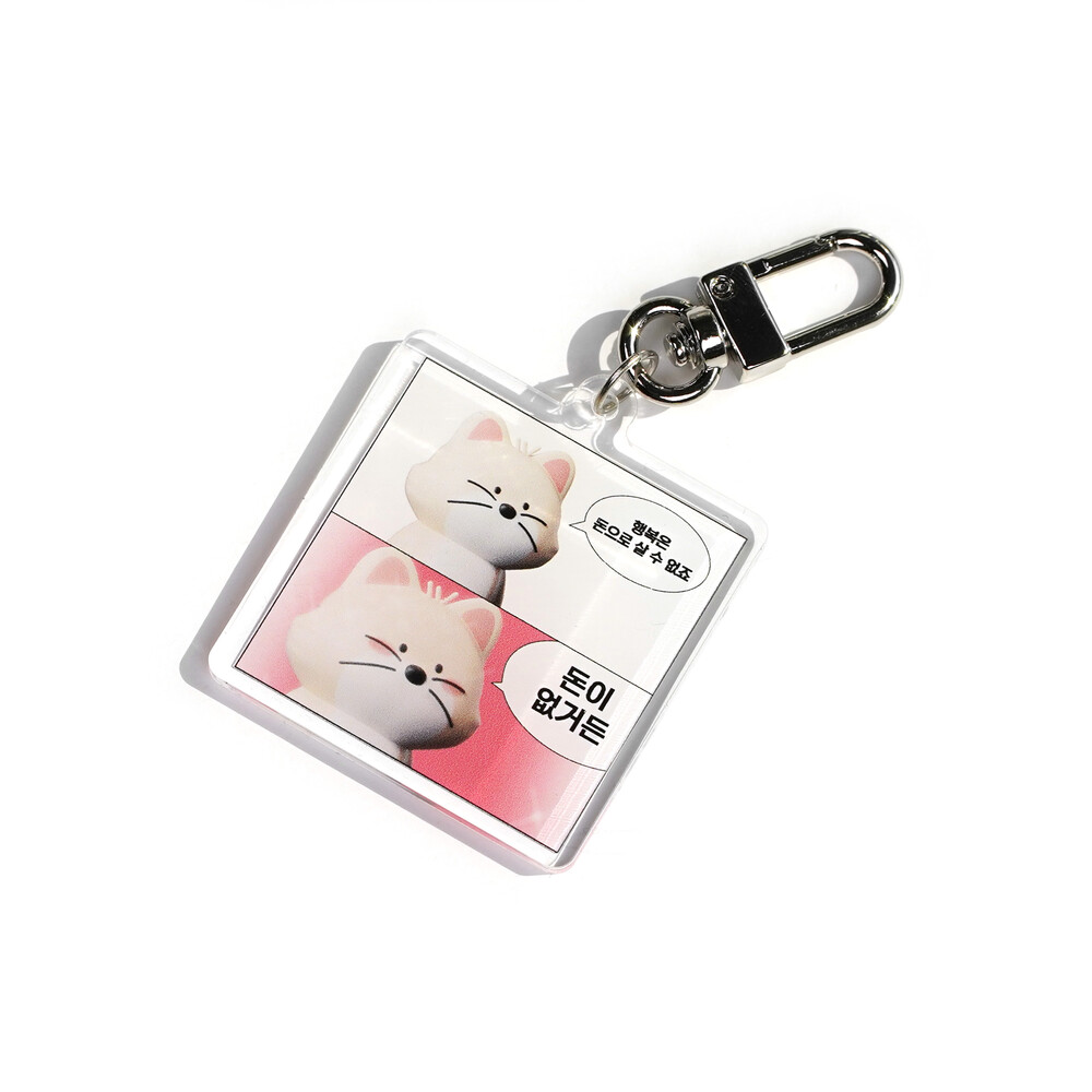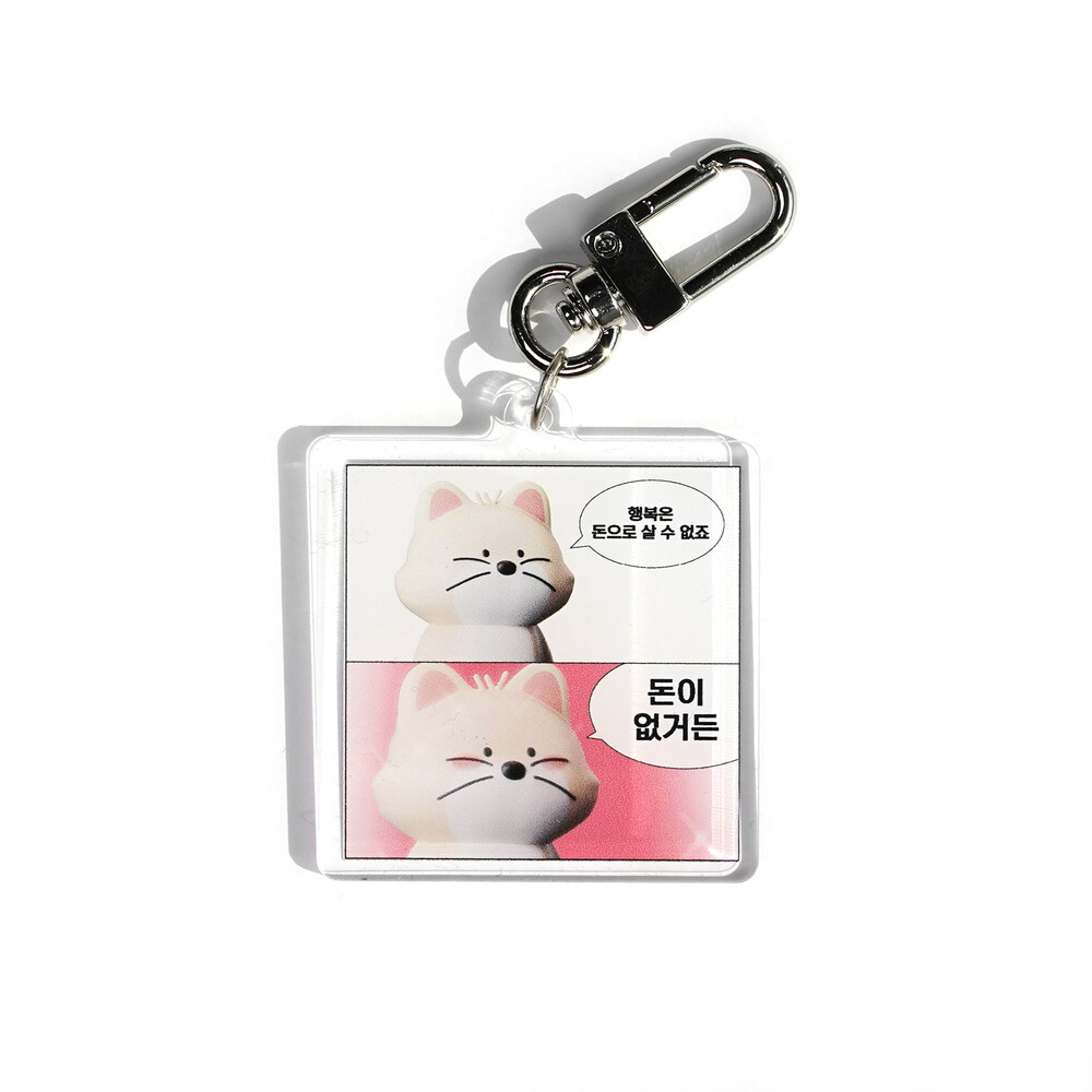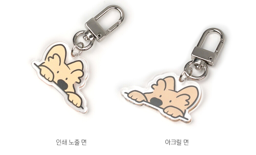 아크릴 키링 제작 방식 상 한 면은 인쇄가 노출되고 다른 한 면은 아크릴로 덮힌 방식입니다. 이는 아크릴 키링의 제작 특성으로 불량이 아니므로 교환/환불이 불가합니다.