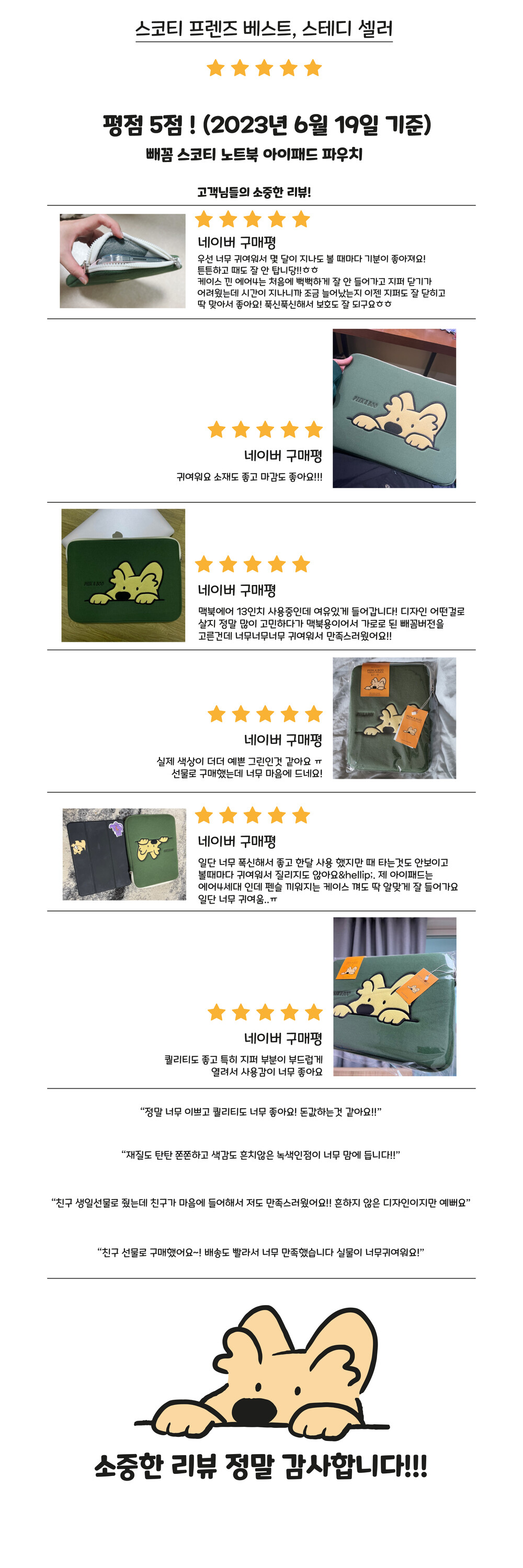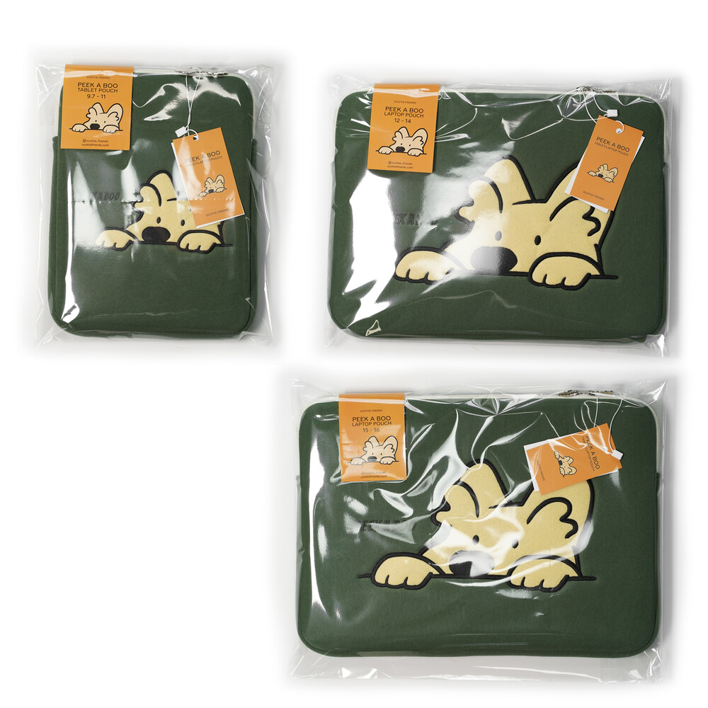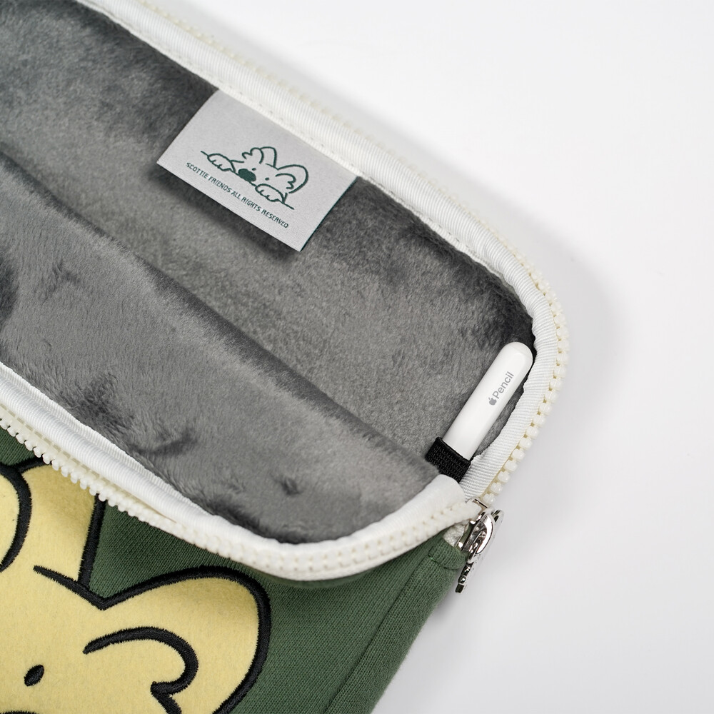 빼꼼! 어딜 그렇게 쳐다보는걸까요? 스코티 프렌즈의 아이코닉한 일러스트를 품은 빼꼼 스코티 노트북/아이패드 파우치입니다.